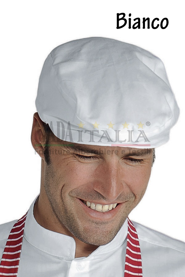 Il cappellino è realizzato in taglia unica in cotone o cotone/poliestere ed è un prodotto sempre più utilizzato nel settore della ristorazione dal personale bar, gelaterie e pasticcerie.