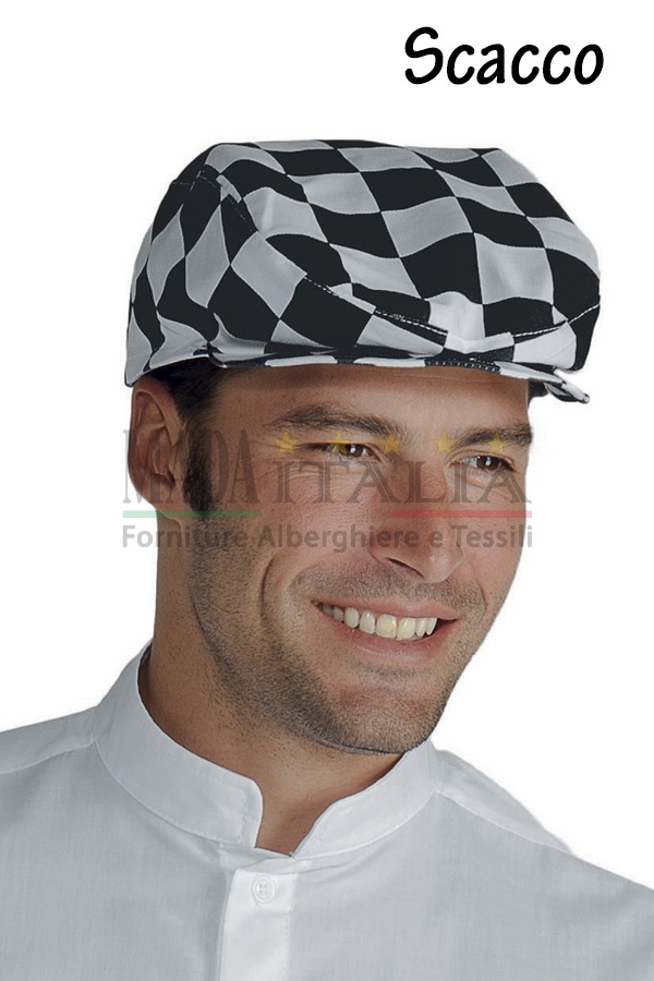 Cappellino da barista modello Coppola, realizzato in diverse colorazioni tinta unita o fantasia.