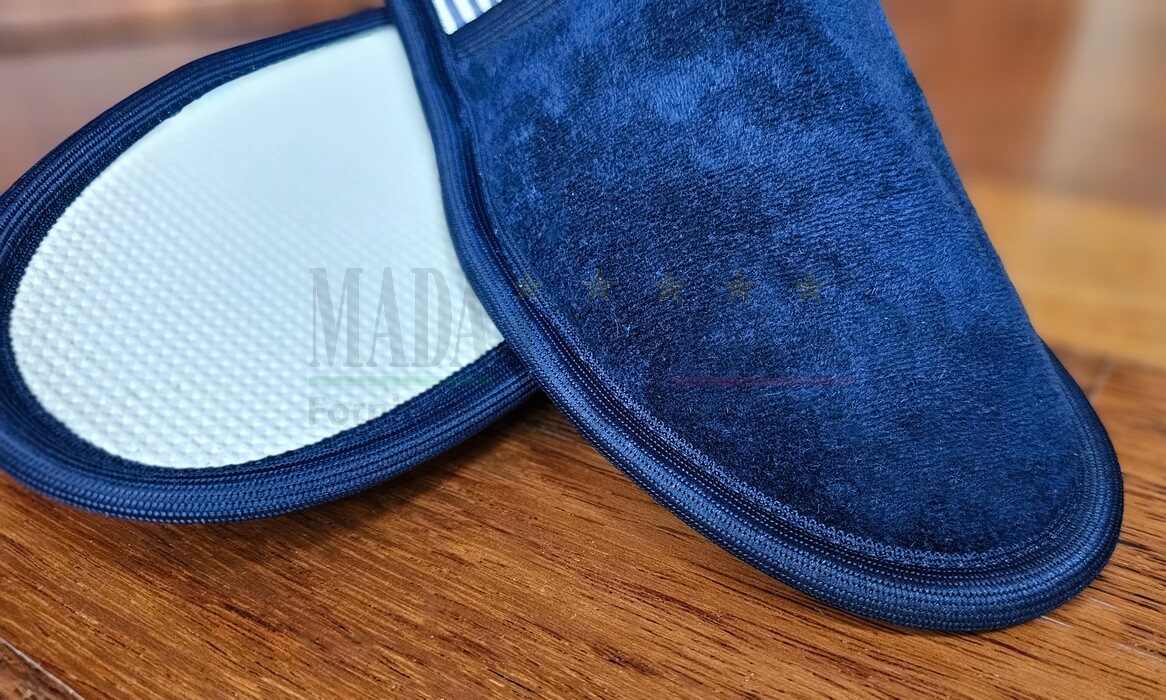 Le ciabattine monouso per hotel in ciniglia blu scuro offrono un’esperienza premium ai vostri ospiti, migliorano l’igiene