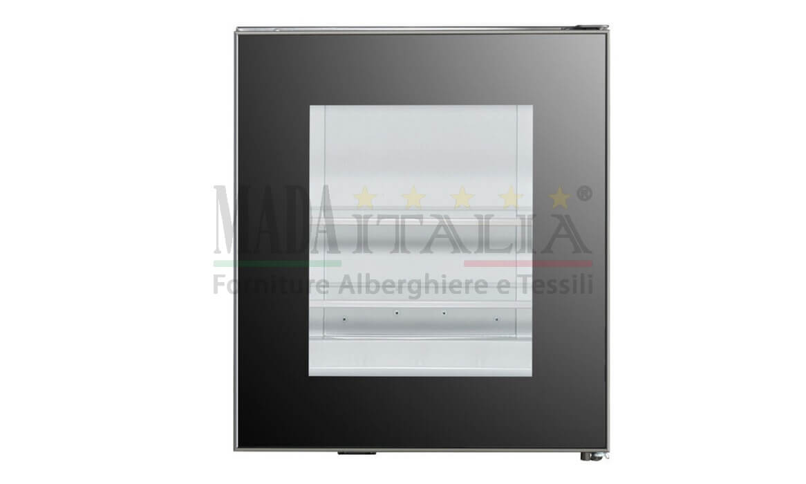 Scopri il minibar da 40 litri perfetto per hotel, uffici e camere private. Con un design raffinato in finitura nera e una porta a triplo strato di vetro, garantisce eleganza e massima visibilità degli alimenti e bevande conservati.
