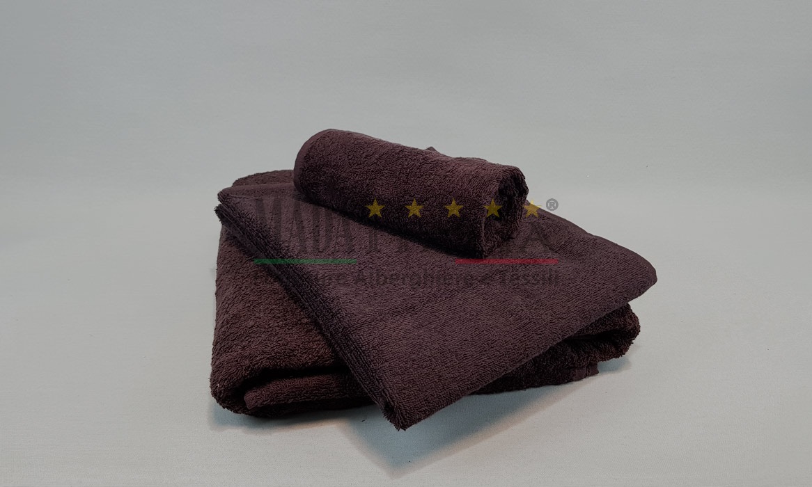 Set Asciugamani in morbida spugna 100% cotone idrofilo di ottima fattura, tinto colore Testa di Moro, resistente al candeggio, rifiniti con orlo 4 lati con punto annodato, resistente ai lavaggi intensi.