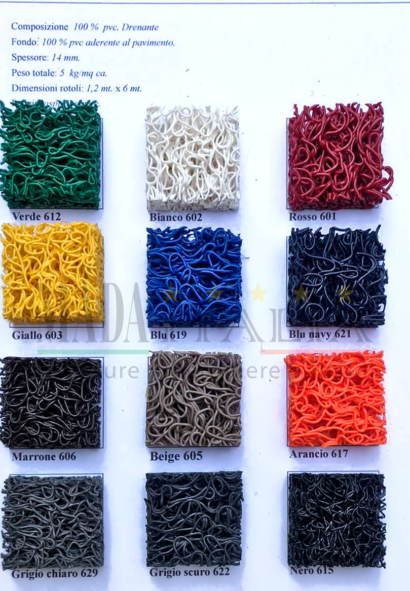 Il tappeto d’ingresso in ricciolo vinilico drenante personalizzabile è un prodotto unico e pratico per la tua struttura o ufficio. La sua superficie in ricciolo di vinile permette di trattenere efficacemente lo sporco e l’umidità, garantendo un ambiente pulito e sicuro. La particolare struttura drenante permette inoltre di far scorrere l’acqua attraverso il tappeto, evitando così fastidiosi accumuli, è perfetto per ingressi esterni non riparati o anche per bordo piscina.