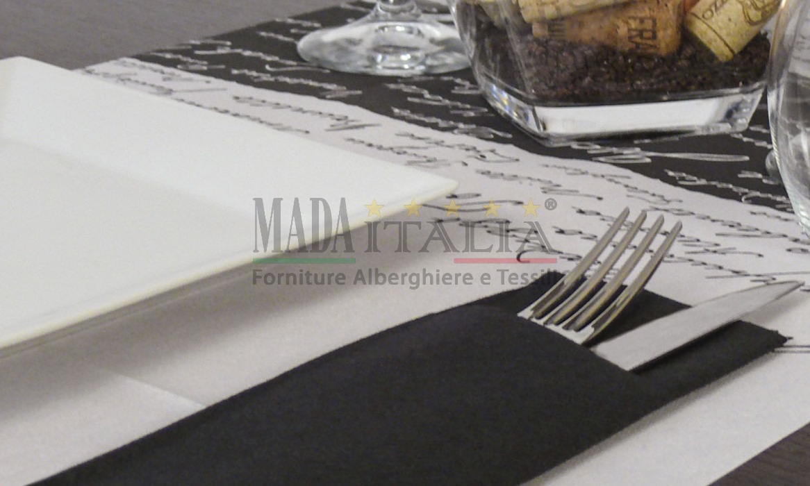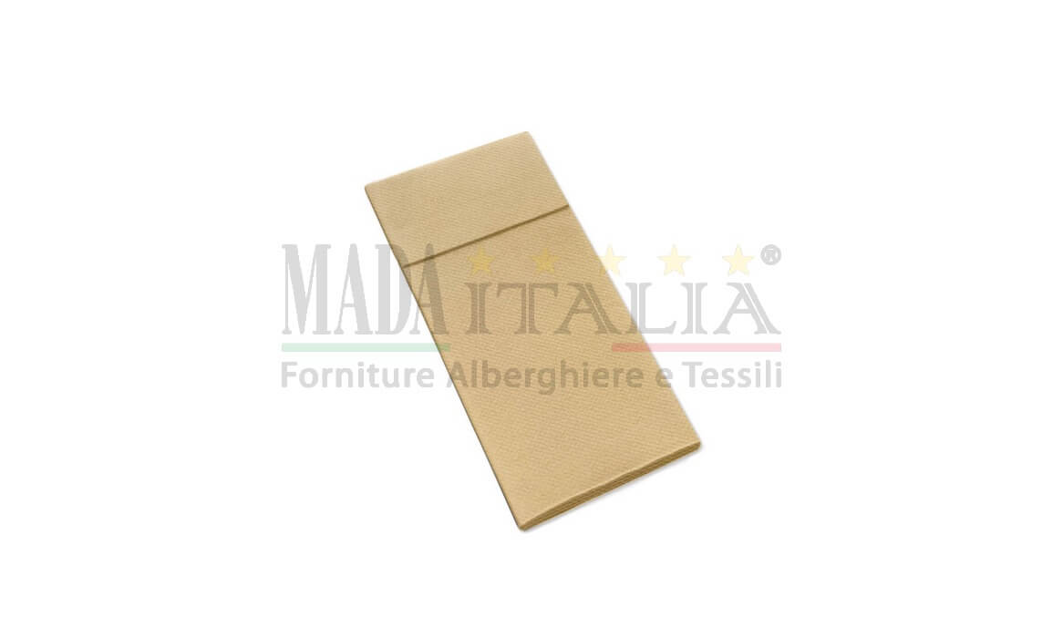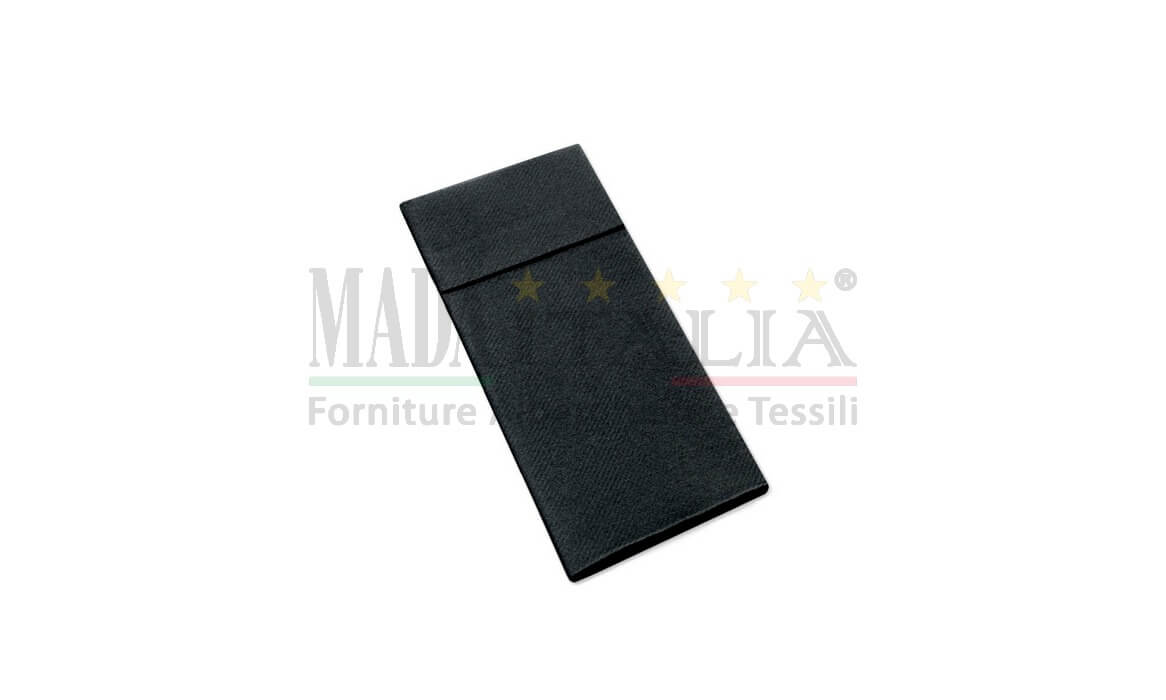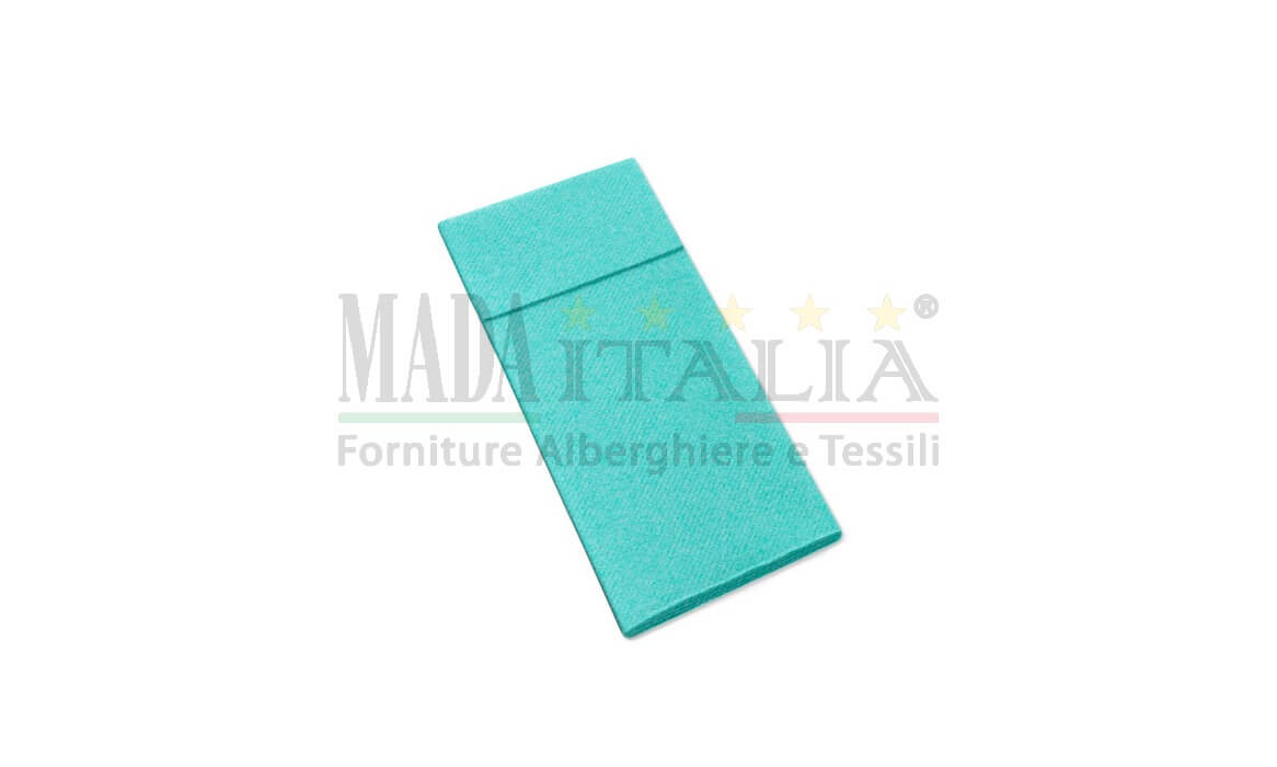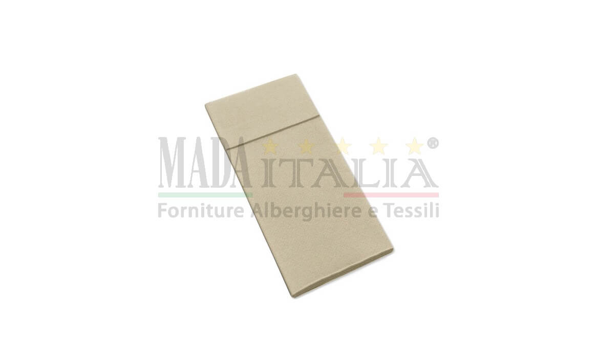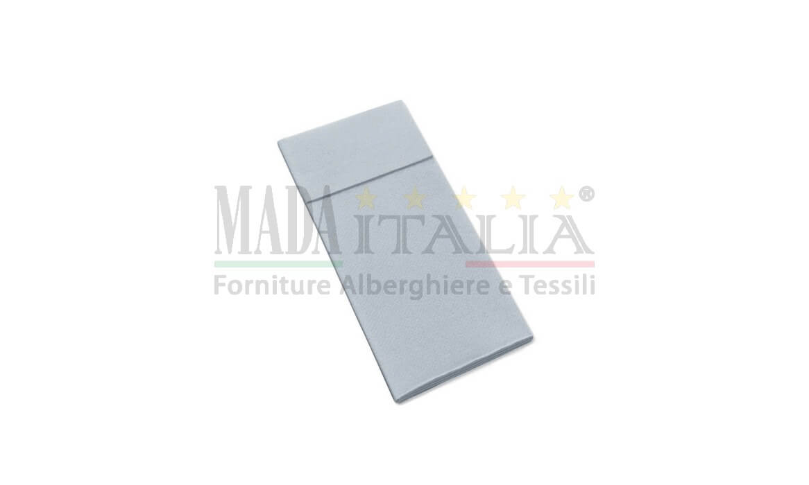 Tovaglioli monouso ripiegato con tasca porta posate che veste la tavola con stile e praticità.